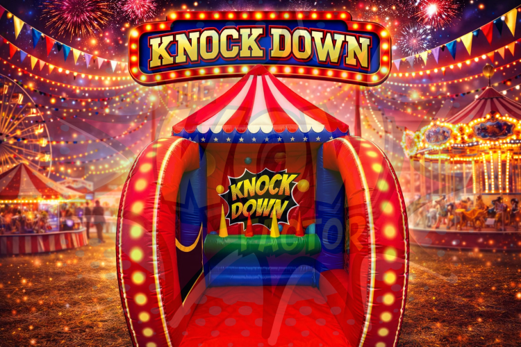 New for 2025! Introducing our Knock Down Carnival Game!!! This classic carnival game is perfect for any outdoor event and is sure to be a hit with guests of all ages. For even more excitement, connect it to 2 or 3 other games to create an over the top Grand Carnival that runs off a single blower.