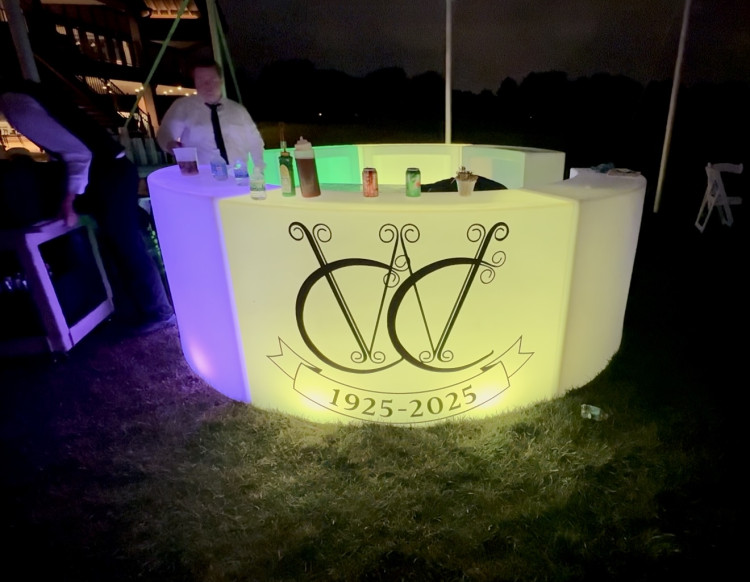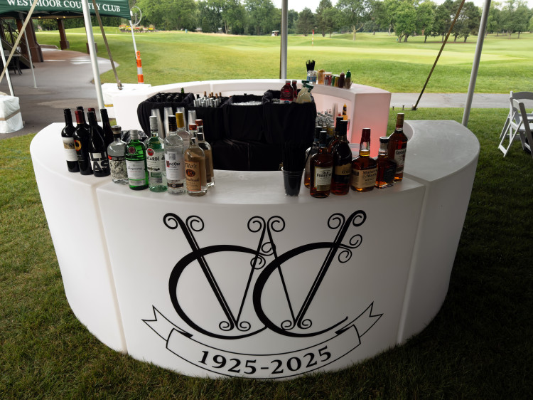 Our new 6-piece 360 Bar is hard to miss...and perfect for large-scale events. Add multiple bartenders and keep the beverages flowing in all directions with this amazing 6-piece bar! Each 5' bar has a shelf and is ready to be branded with your logo (extra charge). Price reflects four hour rental window and doesn't include delivery.