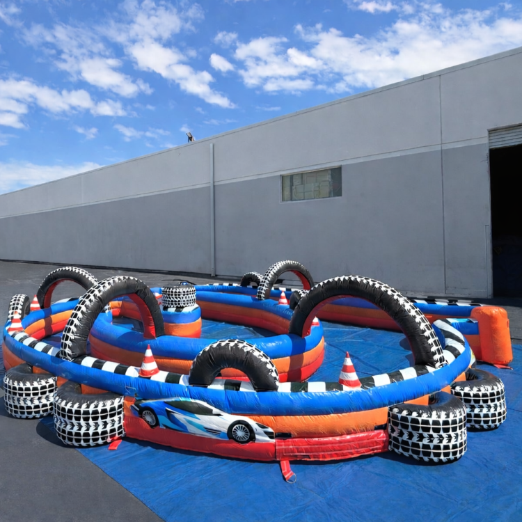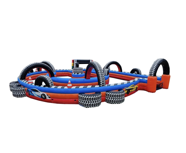 New for 2026! Our new Need for Speed inflatable race track with remote control cars is the perfect indoor or outdoor event for all ages. Four racers compete in this challenging track measuring 20' x 20'. Lot's of fun in a modest footprint. Perfect for trade show exhibits, school events, corporate employee appreciation events, bar/bat mitzvahs and more. MULTIPLE TRACKS AVAILABLE FOR LARGER EVENTS. Price includes 4 hour rental window. Delivery and attendant are additional charges.