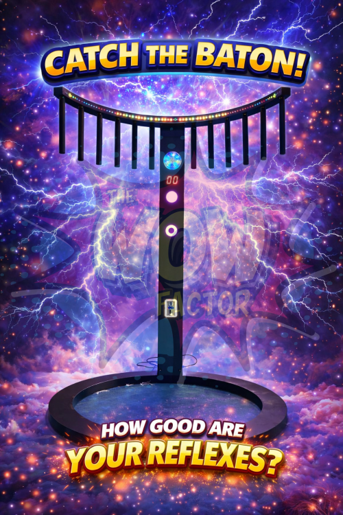 Think you have cat-like reflexes? There's only one way to find out...by renting our awesome new Catch the Baton game! How many of the 10 randomly dropped batons can you catch in the allotted time? The LED lighting on this highly interactive game is a perfect addition to your school or company's next Glow Lounge (courtesy of The Wow Factor!). Price reflects 4-hour rental window. Delivery and attendant not included.